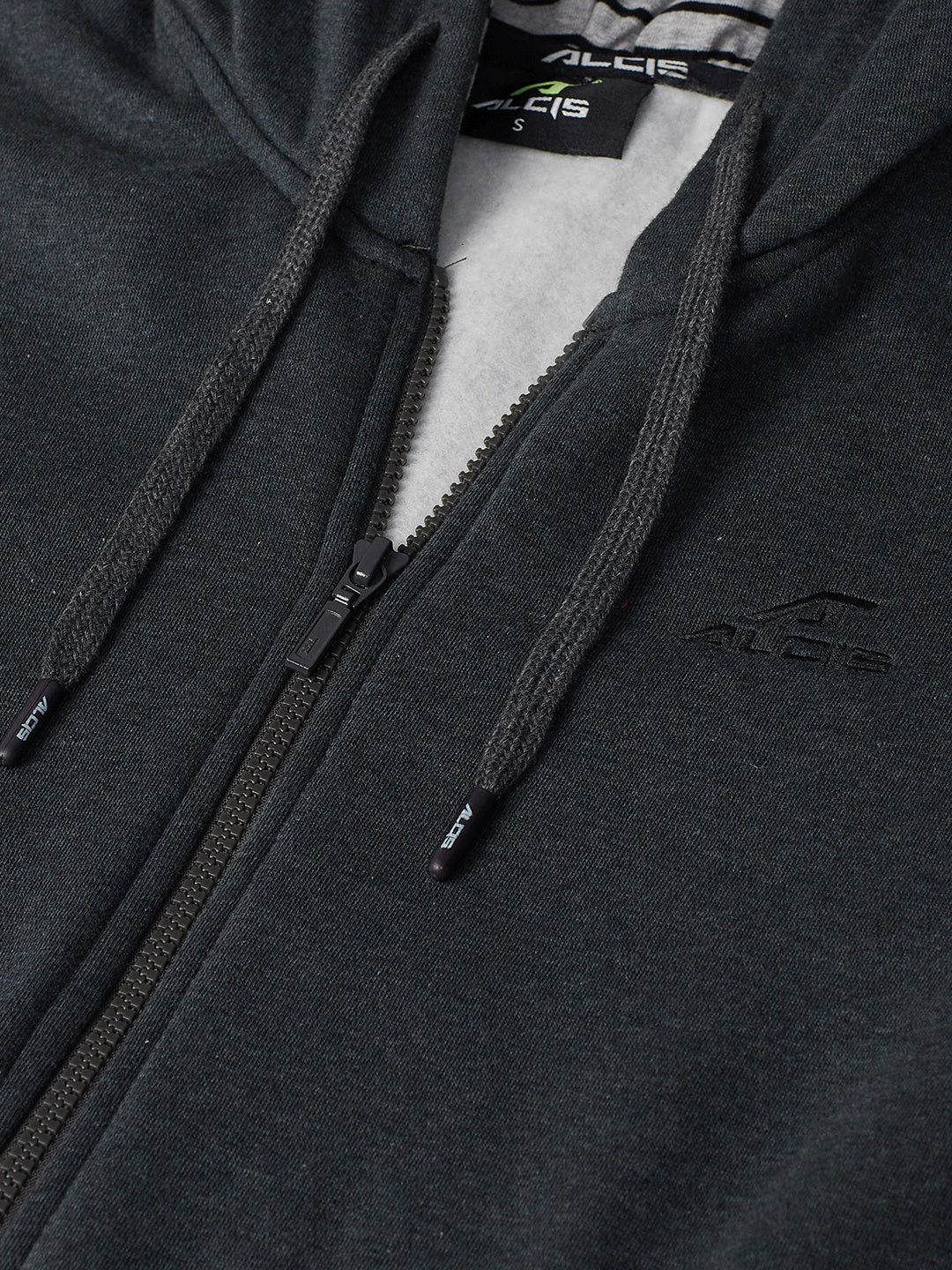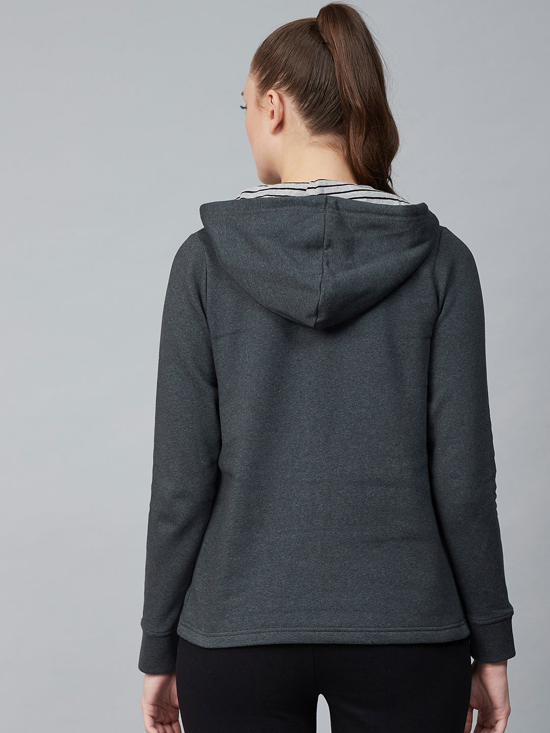 Alcis Women Charcoal Grey Solid Hooded Front-Open Sweatshirt