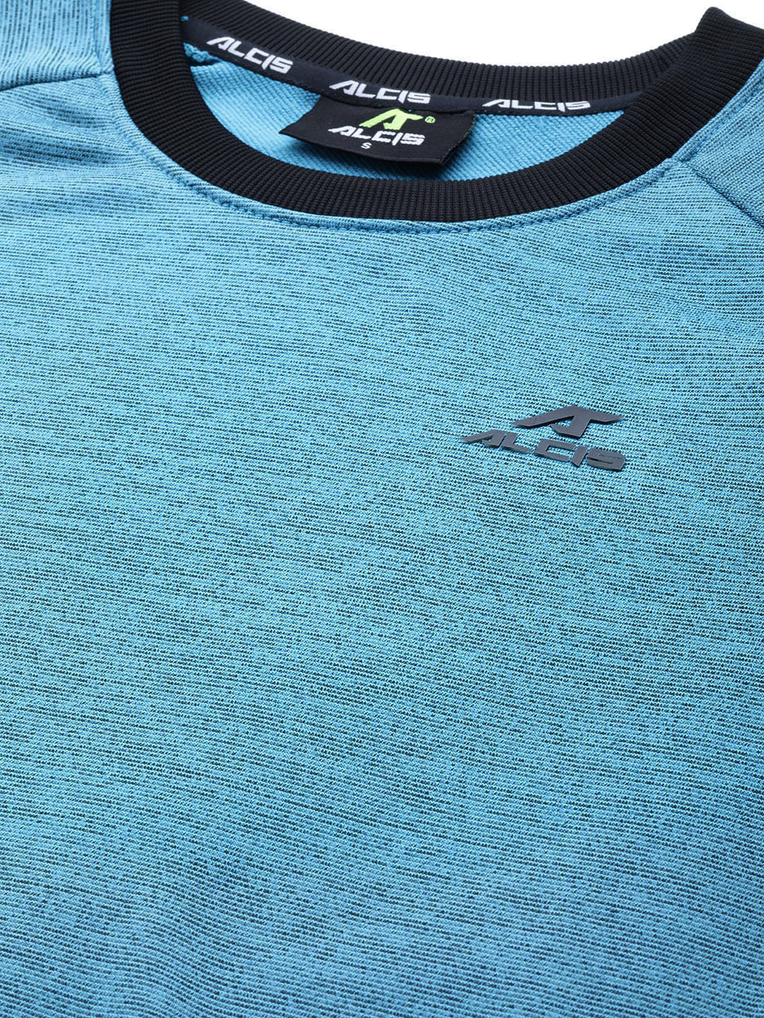 Alcis Women Teal Blue Black Self-Design Sweatshirt