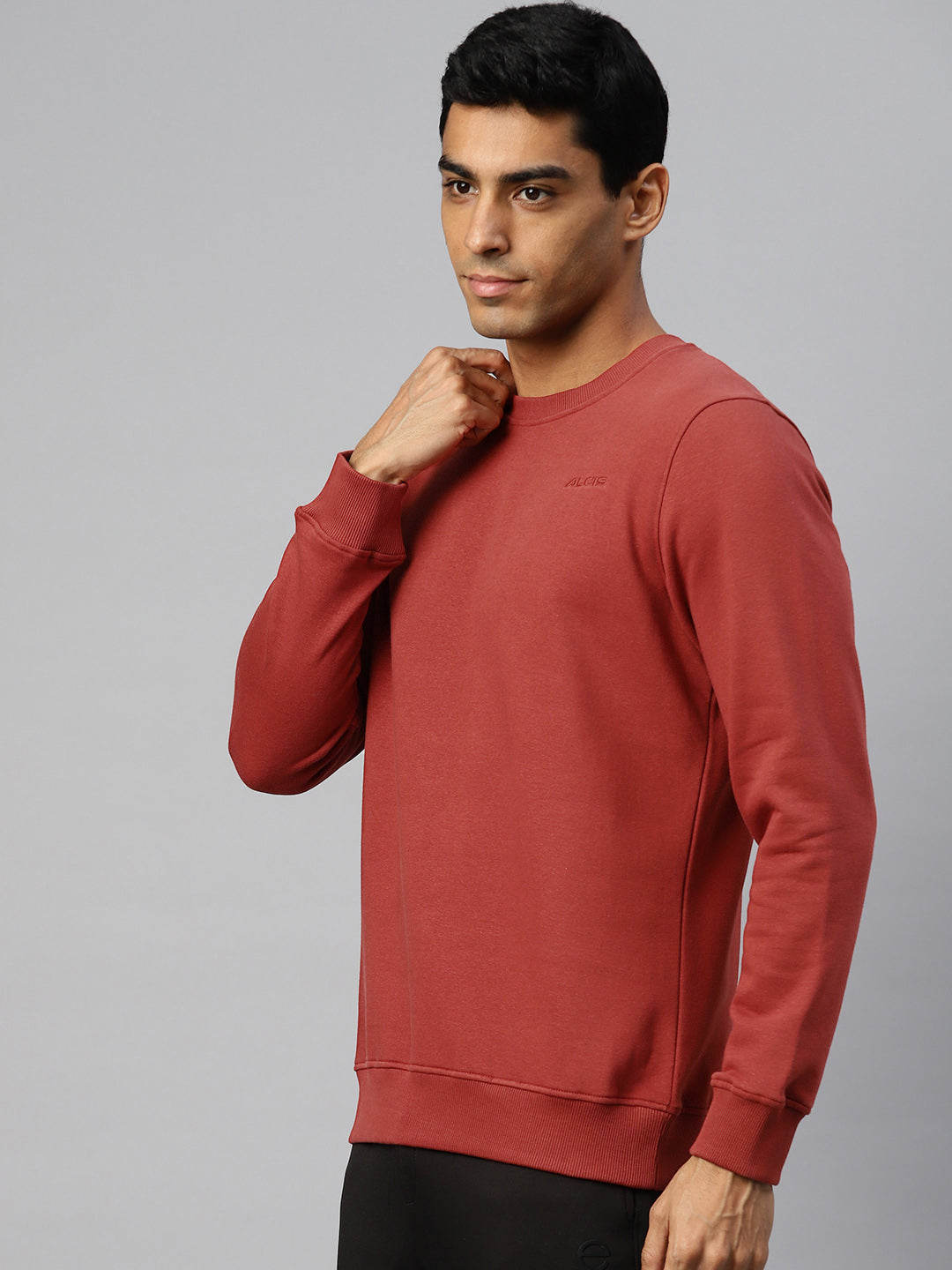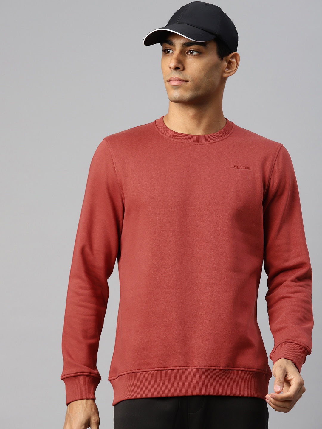 - The key to cool weather is finding layers that work. Pull on this ALCIS sweatshirt and stay comfortable through your last stride. You can increase your efforts with fabric that absorbs moisture without getting soggy. A well-shaped silhouette supports natural movement without any obstructions. This sweatshirt is made with 70% Cotton 30% Polyester, which features Soft-Touch technology for added comfort. The regular-fit design lends a flattering silhouette,